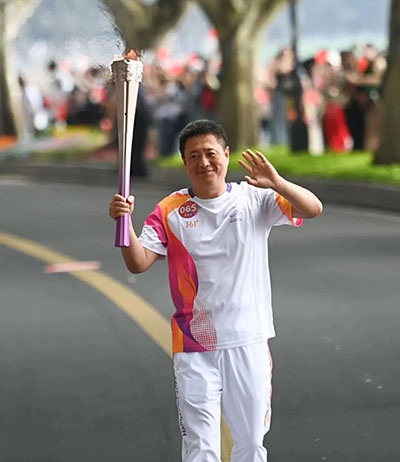 周新衛(wèi)圓通首位杭州亞運(yùn)火炬手,在第65棒接過杭州亞運(yùn)會(huì)火炬后,奔跑起來。