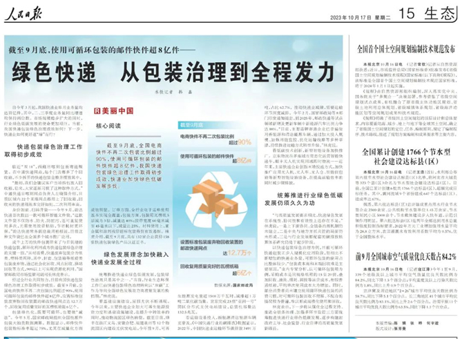 人民日?qǐng)?bào):綠色快遞 從包裝治理到全程發(fā)力